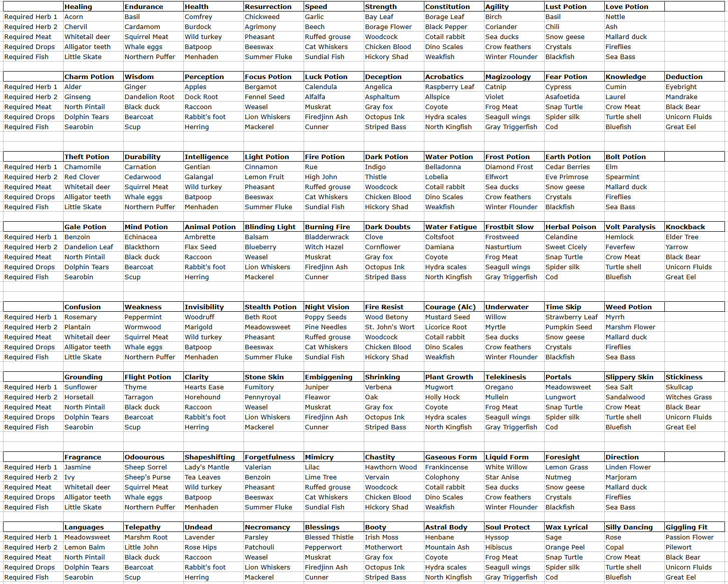 dice 94. Firedjinn (or any) Ash - Used in Resurrection rituals. Cat Transformation Potion, People Transformation Potion, and Speed Potion.